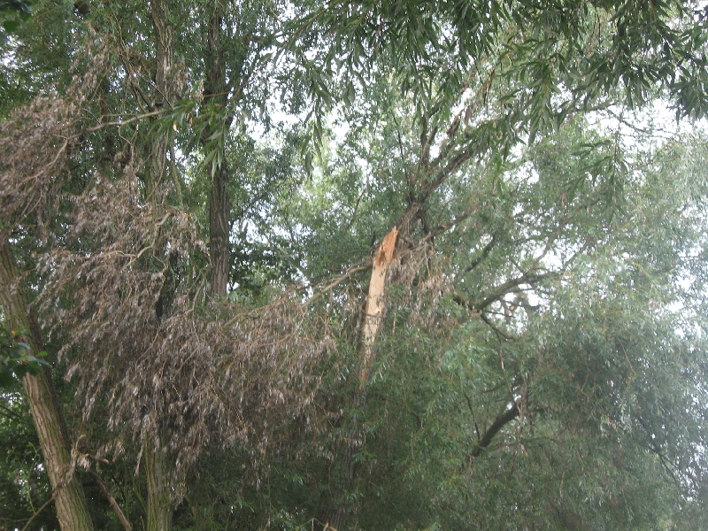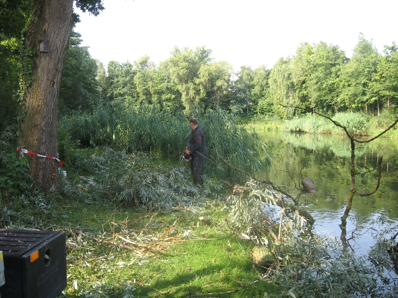 Sturmschäden an den BäumenBei einem Unwetter am Mittwoch den 14.Juli.2010 entstanden erhebliche Schäden an den Bäumen auf der linken Seite des Fischweihers. Durch einen Arbeitseinsatz wurden diese Schäden entfernt, damit niemand durch herabfallende Äste zu Schaden kommt. |